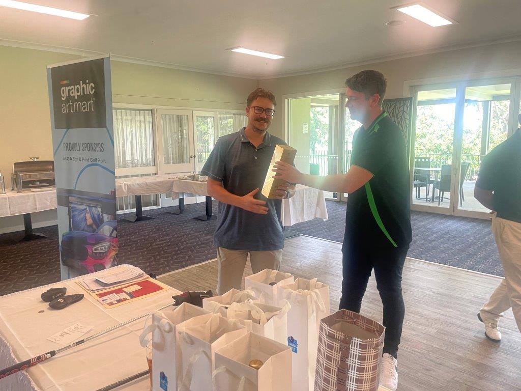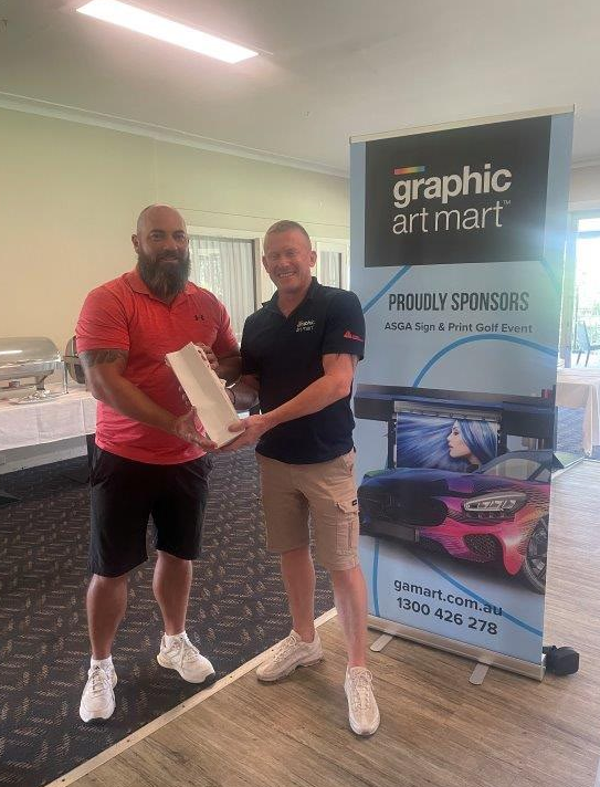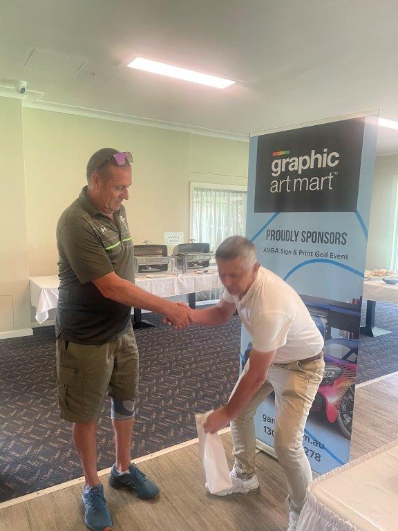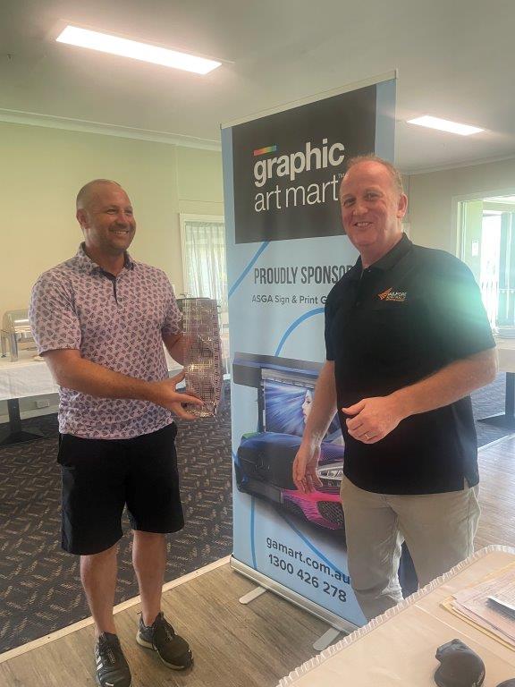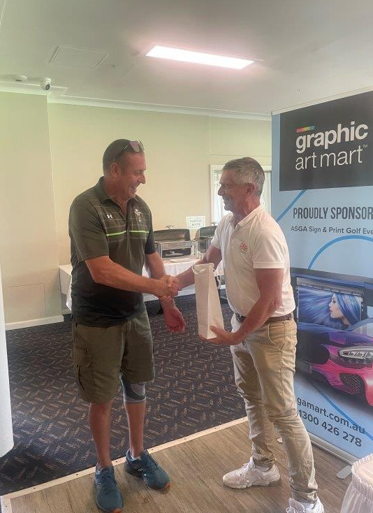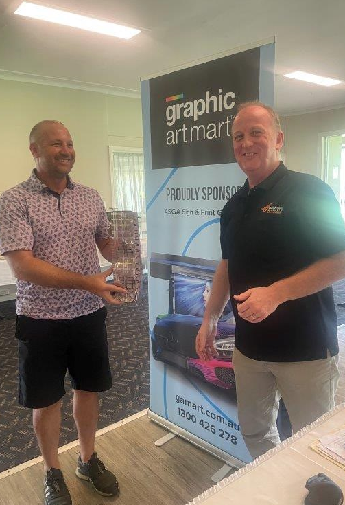 The list of individual hole winners showcased the spread and variety of companies taking part, with staff and clients from numerous businesses receiving prizes. Mike Jovanovich (Signco Manufacturing), Glen Rogers (Signarama), Warren Redmond (Rowmark), Lee Dunks (ORAFOL), Greg McCabe (KwikKopy) and Greg Woolfrey (Shann Group) were amongst those winners. Darren Hawes of Amari took away the new driving club presented by Cory Bourne of Rowmark for the Long Drive on Hole 11 whilst a new putter also presented by Cory for Nearest the Pin on the challenging Par 3 17th hole was won by Glen Rogers (SAR). Sydney Aluminium / Direct Aluminium were the winners of the ASGA membership draw, winning a year’s free membership to the association.